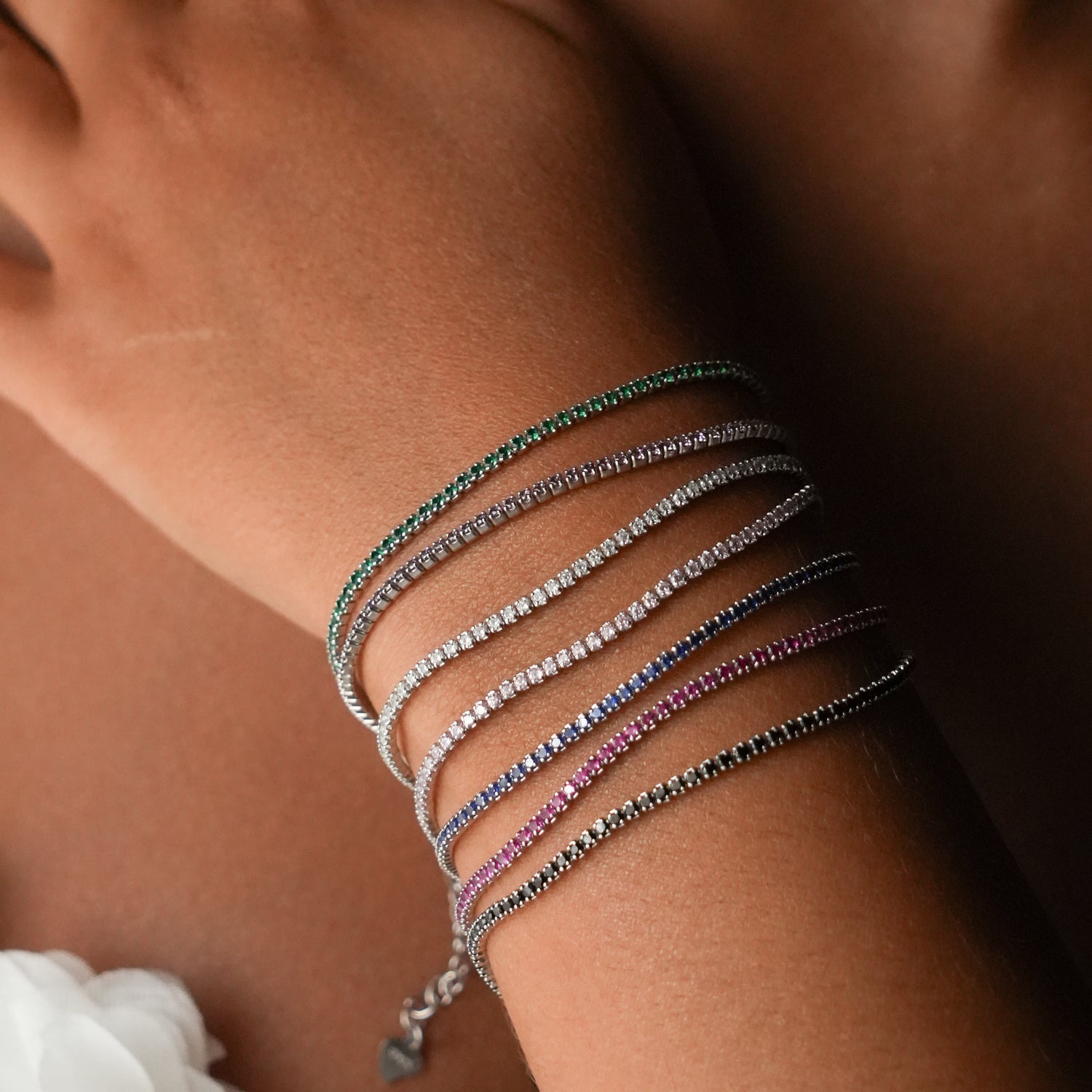 Una collezione di sette tennis in argento 925, ognuno impreziosito da zirconi dai colori intensi e luminosi. Ispirata alle sfumature della luce, questa linea celebra lβeleganza quotidiana con un tocco di colore per ogni occasione. Perfetta per chi ama brillare in ogni momento.